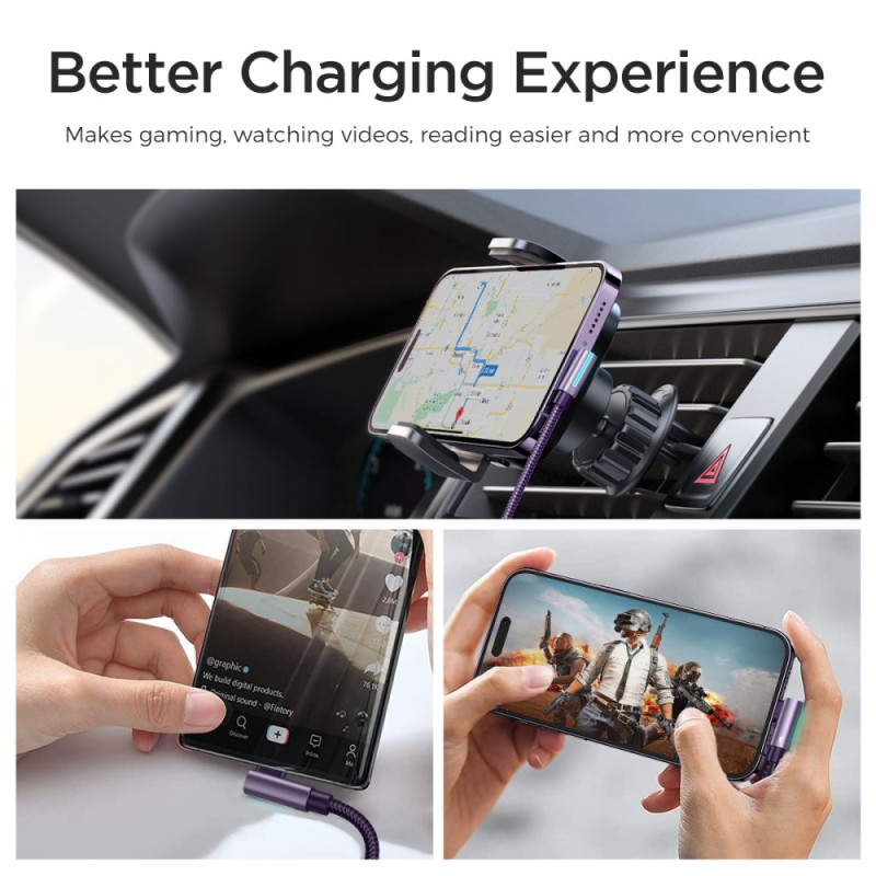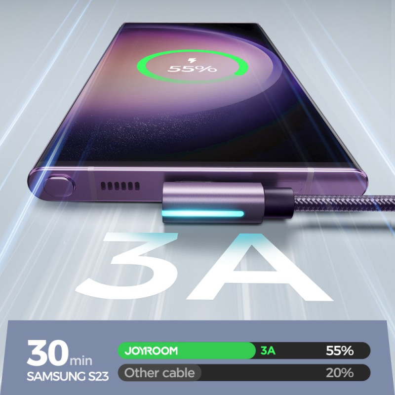 JOYROOM biedt een kabel van 1,2 m met een USB-uiteinde en een haakse USB-C-uiteinde.