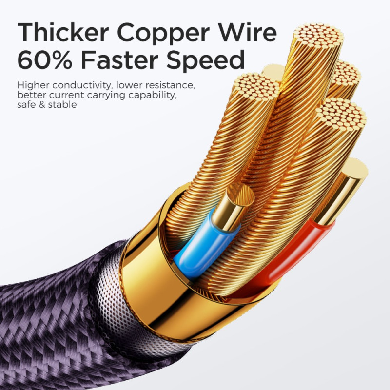 Het gevlochten nylon maakt de kabel duurzamer en beschermt tegen torsie en gewicht.