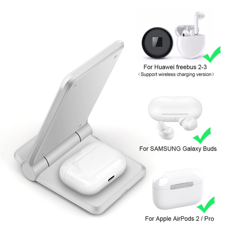Dit oplaadstation laadt je mobiele telefoon en koptelefoon tegelijkertijd op.