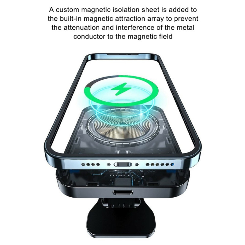 Het elegante ontwerp en de robuuste constructie maken het de ideale accessoire voor wie op zoek is naar zowel een praktische telefoonhouder als een krachtige draadloze oplader voor onderweg.