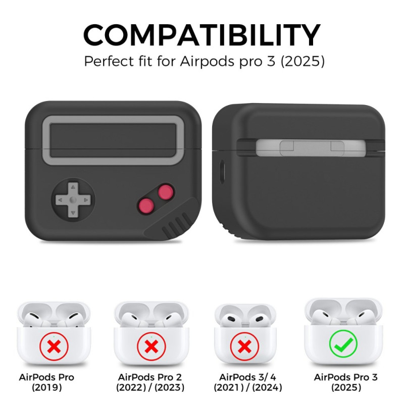 Bescherm je AirPods Pro 3 in stijl met dit siliconen hoesje met een nostalgisch ontwerp van een retro gameconsole. Het is gemaakt van eersteklas siliconen, biedt volledige bescherming tegen vallen en krassen en geeft je hoofdtelefoon een speels tintje.