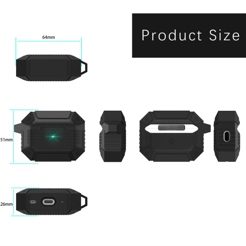 Bescherm je AirPods Pro 3 in stijl met deze schokbestendige hoes met een ontwerp geïnspireerd op een harnas. Hij is gemaakt van slijtvast TPU en biedt optimale bescherming tegen stoten en vallen, terwijl de oplaadpoorten gemakkelijk toegankelijk blijven.