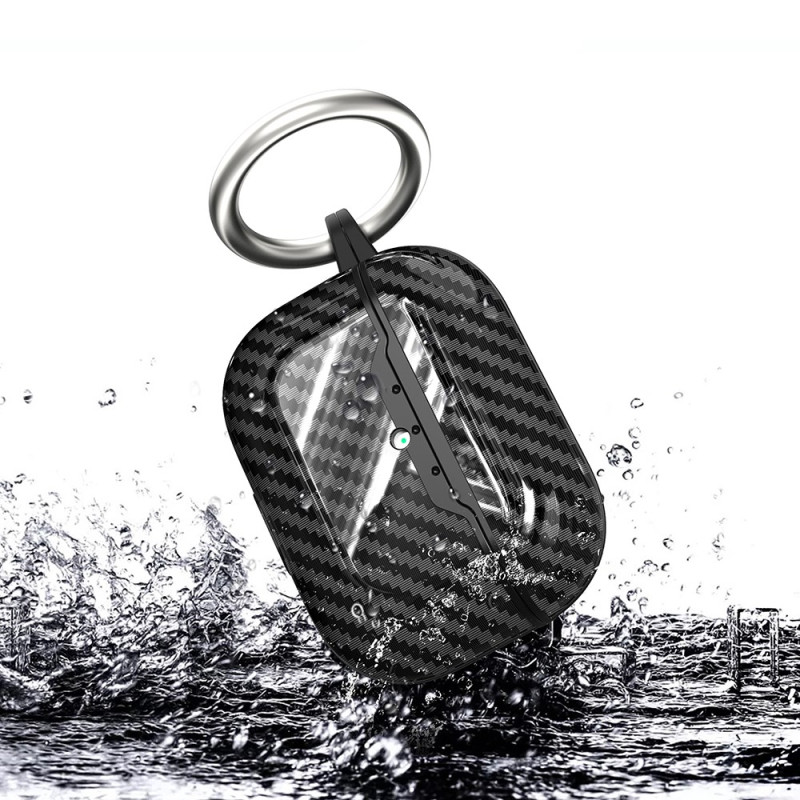 Bescherm je AirPods Pro 3 oplaadetui in stijl met dit zachte TPU-etui met koolstofvezeltextuur. Schokbestendig ontwerp met praktische anti-verlies lus voor bevestiging aan tassen of sleutelhangers. Oplaadpoort toegankelijk zonder te verwijderen.