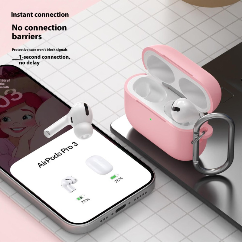 Bescherm je AirPods Pro 3 met dit 2,3 mm dikke siliconen hoesje. Volledige bescherming tegen stoten en vallen, compatibel met draadloos opladen. Wordt geleverd met een praktische karabijnhaak voor veilig transport.