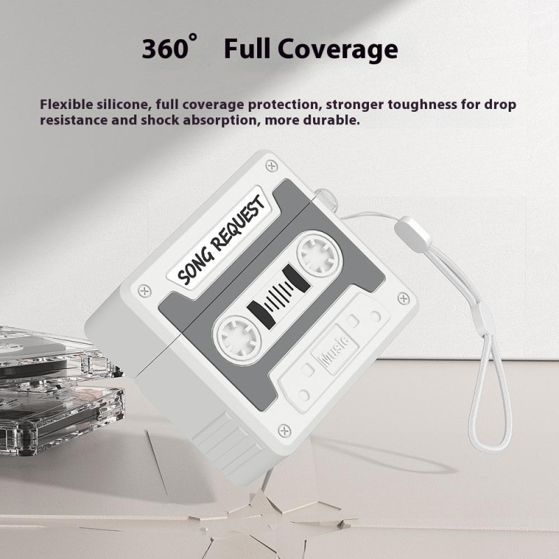 Bescherm je AirPods Pro 3 in stijl met dit siliconen hoesje met een retro-ontwerp geïnspireerd op vintage cassettebandjes. Hij biedt volledige 360° bescherming en combineert nostalgie en functionaliteit met zijn 3D-reliëfontwerp en praktische anti-verliesband.