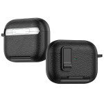 Eersteklas beschermhoes voor AirPods Pro 3 van TPU en pc met lycheestructuur. Innovatief ontwerp met automatisch slot, geïntegreerde telefoonhouder en karabijnhaak. All-round bescherming tegen stoten, krassen en stof.