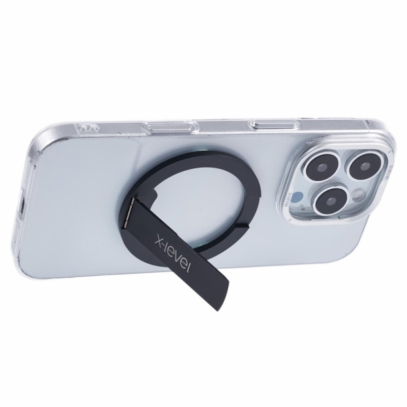 De X-LEVEL magnetische telefoonhouder met ring en voet combineert elegantie en functionaliteit voor comfortabel dagelijks gebruik. Het moderne, lineaire ontwerp past perfect bij recente smartphones. Dankzij de krachtige magneten biedt hij een stevige grip voor handsfree gebruik in alle veiligheid. Hij is veelzijdig en kan worden gebruikt als steunring voor een betere grip en als standaard voor het bekijken van video's of het voeren van telefoongesprekken. Hij is gemaakt van hoogwaardig metaal en biedt duurzaamheid en stabiliteit terwijl hij toch slank en aantrekkelijk blijft. Verkrijgbaar in zwart of zilver, dus past bij elke stijl.