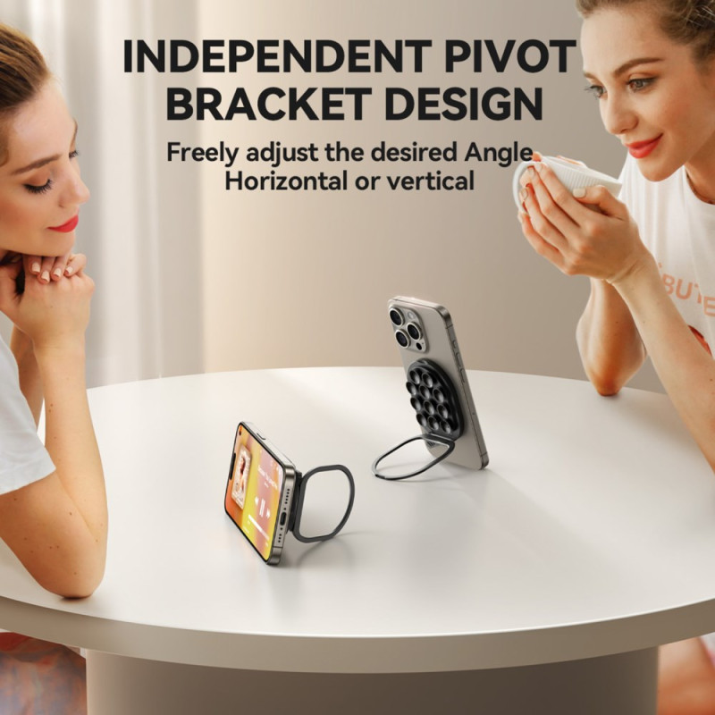 De JOYROOM magnetische houder met zuignappen biedt een praktische en veelzijdige oplossing voor het bevestigen van je telefoon op elk glad oppervlak. Het krachtige magneetsysteem zorgt voor een snelle en veilige bevestiging, terwijl de versterkte zuignappen voor optimale stabiliteit zorgen, ideaal voor het maken van content of handsfree foto's. Compact en lichtgewicht, gemakkelijk mee te nemen en in één beweging te bevestigen dankzij het geïntegreerde handvat. Hij is gemaakt van ABS, PC, siliconen en aluminium, is duurzaam, comfortabel in gebruik en compatibel met smartphones van 4,7 tot 7 inch.