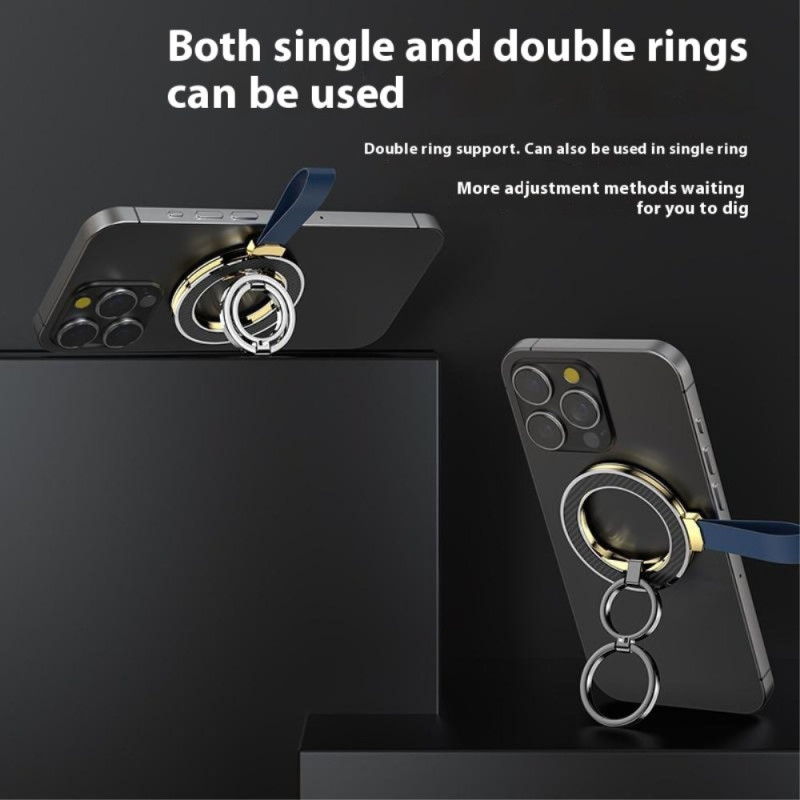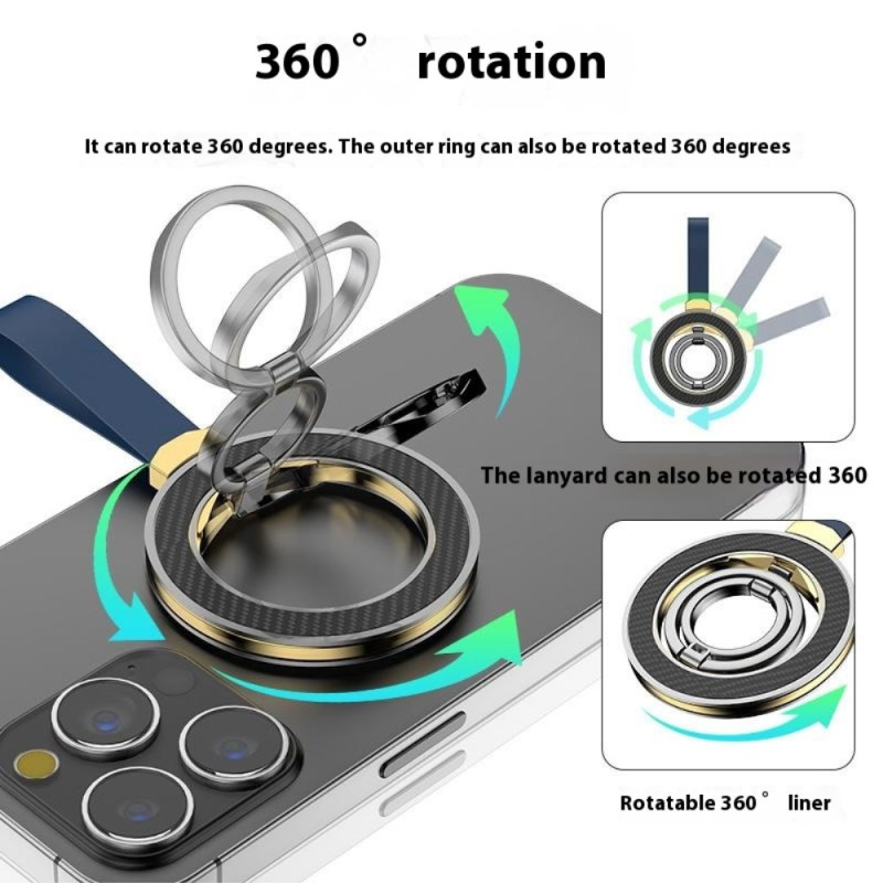 Deze roterende magnetische houder met ring combineert elegantie, comfort en prestaties om je smartphone elke dag te vergezellen. Hij is gemaakt van een zinklegering met een zachte siliconen coating en biedt een prettige, stevige grip. Het krachtige N52 magneetsysteem met 18 magneten zorgt voor een stabiele grip, ideaal voor handsfree gebruik of als kickstand. De ring kan 360° draaien en tot 110° kantelen, zodat je de meest comfortabele hoek kunt kiezen om video's te bekijken, te bellen of content te creëren. Hij is licht en compact en past perfect bij alle moderne smartphones.