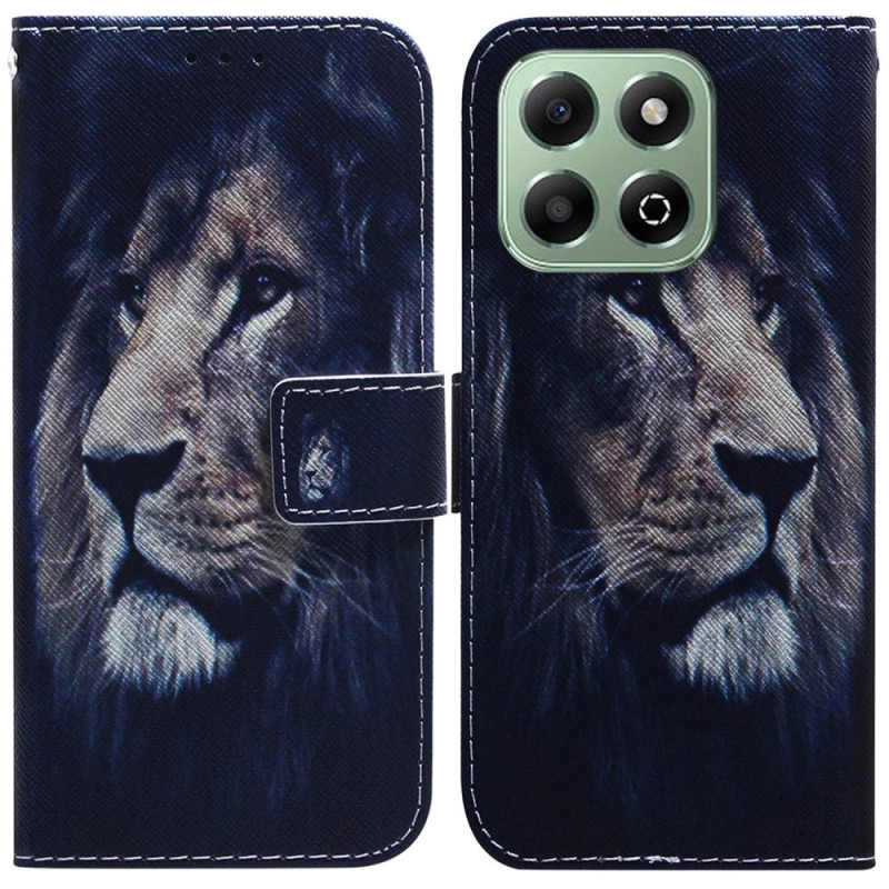 Elegante portemonneehoes met leeuwenmotief voor Honor X6b 4G. Lederen ontwerp met geïntegreerde kaarthouder, uitklapbare standaard en veilige magnetische sluiting. Volledige bescherming tegen stoten en krassen terwijl uw pasjes bij de hand blijven.