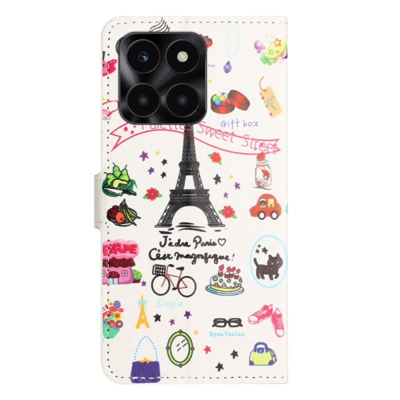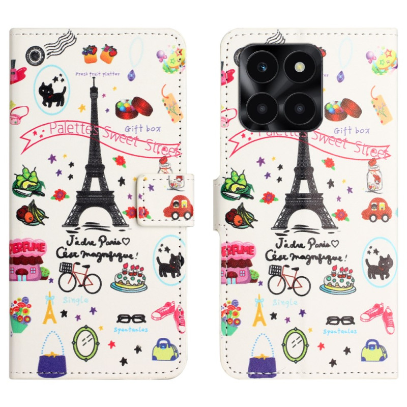 Ontdek de Parijse elegantie met deze wallet case met het motief van de Eiffeltoren. Hij combineert stijl en functionaliteit en beschermt uw Honor X6c 4G / X6b 4G / X6a 4G met kaartsleuven, een veilige magnetische sluiting en een geïntegreerde standaard om uw content in alle vrijheid te bekijken.