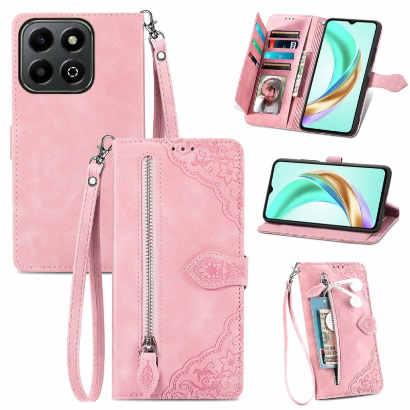 Elegante portemonnee van PU-leer met verfijnd bloemmotief. Voorzien van meerdere kaartsleuven, extern ritsvak, geïntegreerde houder en praktische handriem. Volledige bescherming tegen krassen en stoten voor uw Honor X6b 4G.