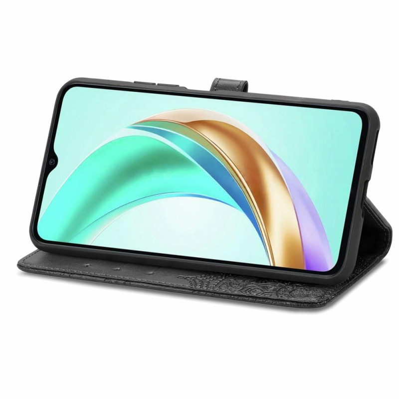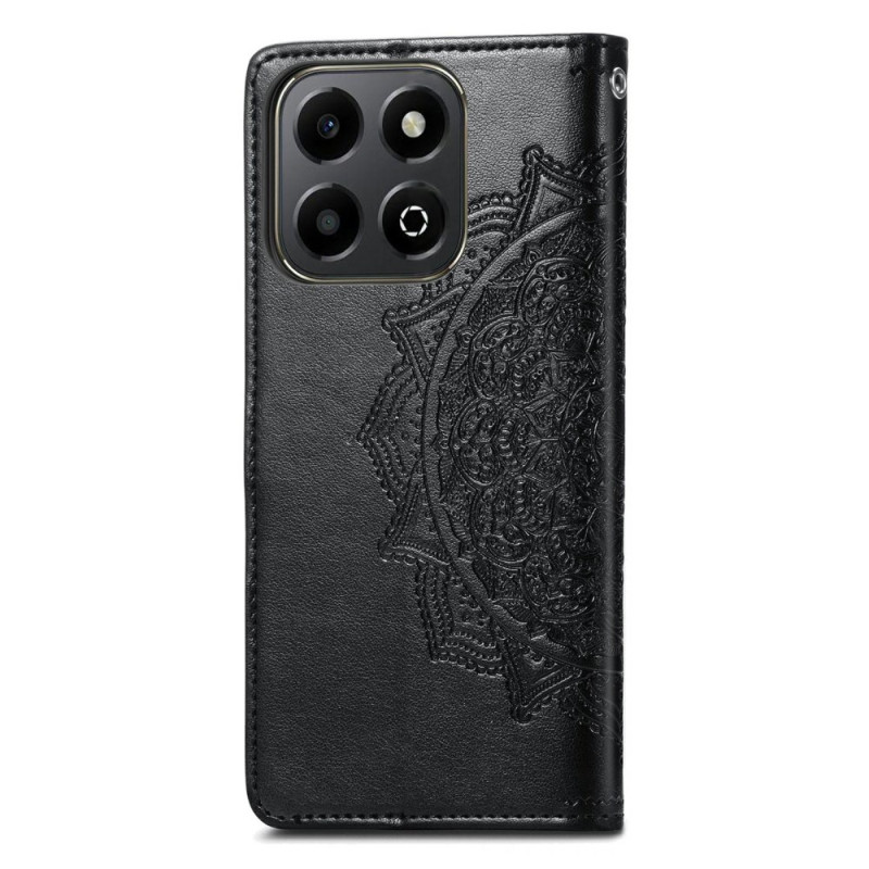 Stijlvolle portemonneehoes voor Honor X6b 4G met gegraveerd mandala-ontwerp. Inclusief 3 kaartsleuven, notitievakje, handsfree houder en praktische handriem. Veilige magnetische sluiting voor optimale bescherming.
