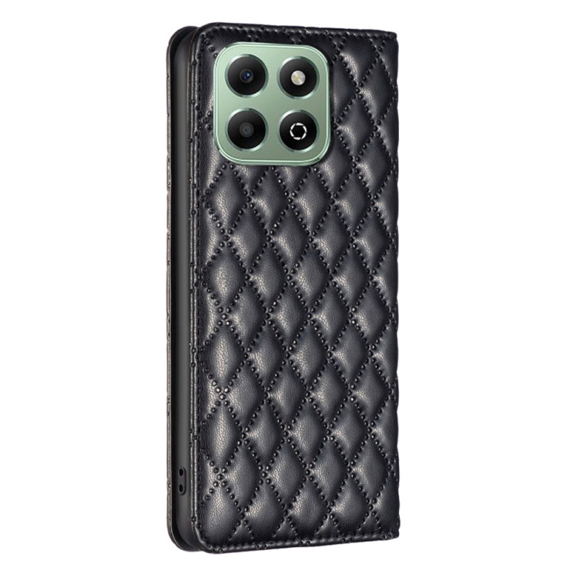 Bescherm uw Honor X6b 4G in stijl met deze PU lederen flap case. Geraffineerd ruitontwerp, krasbestendige matte afwerking, 2 geïntegreerde kaarthouders en opvouwbare standaard voor een handsfree ervaring. Veilige magnetische sluiting.
