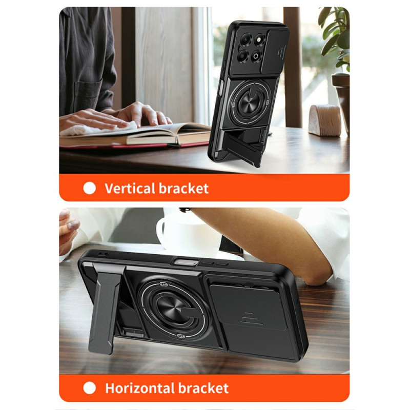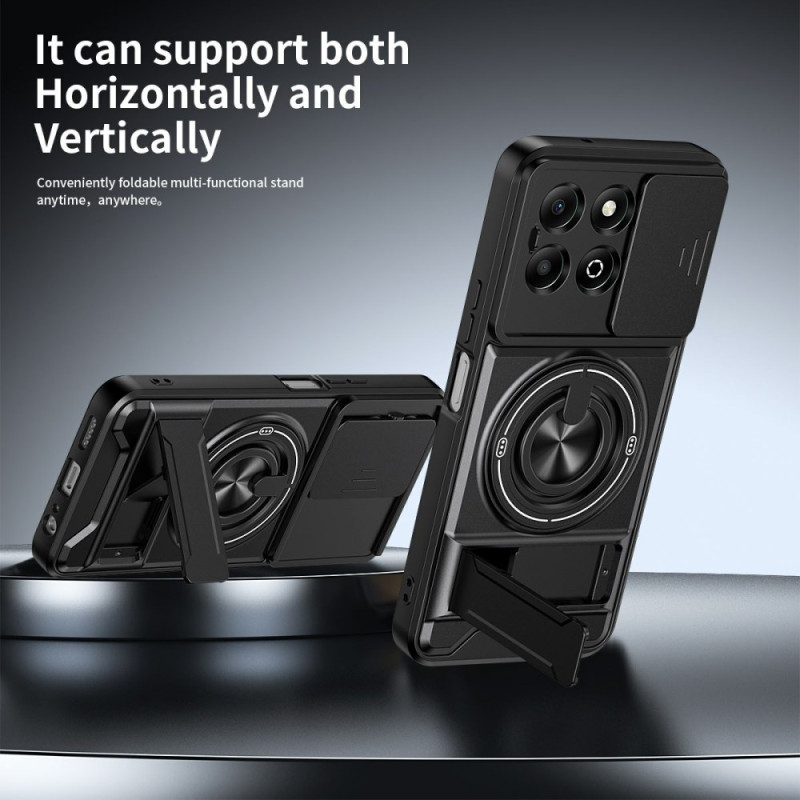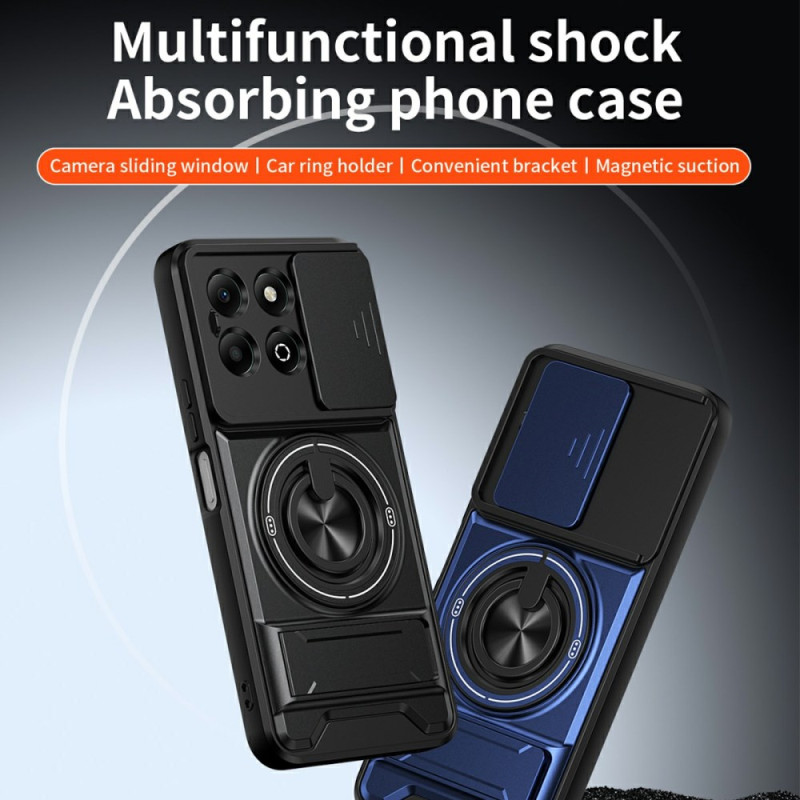 Bescherm uw Honor X6b 4G met deze multifunctionele magnetische hoes. Met een 360° draaibare ring, een opvouwbare steun en een verschuifbare lenskap combineert hij versterkte bescherming met alledaags praktisch gemak.
