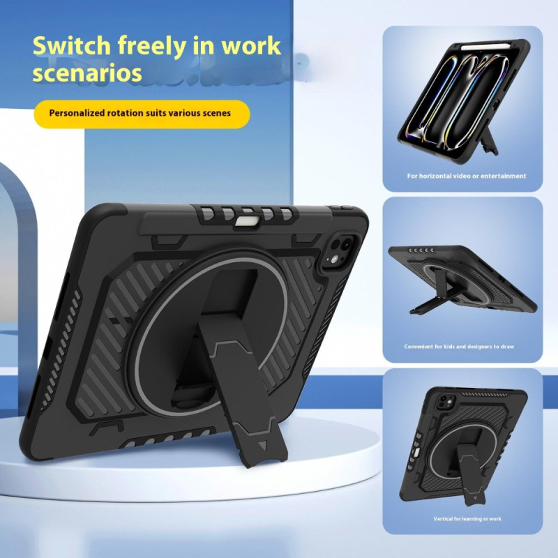 Ontdek onze robuuste en veelzijdige hoes voor iPad Pro 11 (2025) / 11 (2024) Deze hoes is gemaakt van hoogwaardige materialen en biedt superieure bescherming tegen stoten en krassen. De geïntegreerde standaard zorgt voor comfortabel kijken, terwijl de stylushouder praktisch is. Met zijn vingerafdrukbestendige oppervlak en bescherming.