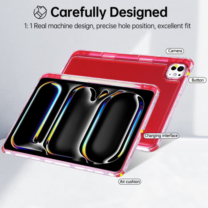Ontdek onze robuuste beschermhoes voor iPad Pro 11 (2025) / 11 (2024). Hij is gemaakt van hoogwaardige materialen en biedt optimale bescherming tegen stoten en krassen. Met versterkte hoeken en een verhoogde rand voor de camera is je tablet veilig en beschermd. Dankzij het nauwkeurige ontwerp zijn alle functies gemakkelijk toegankelijk.