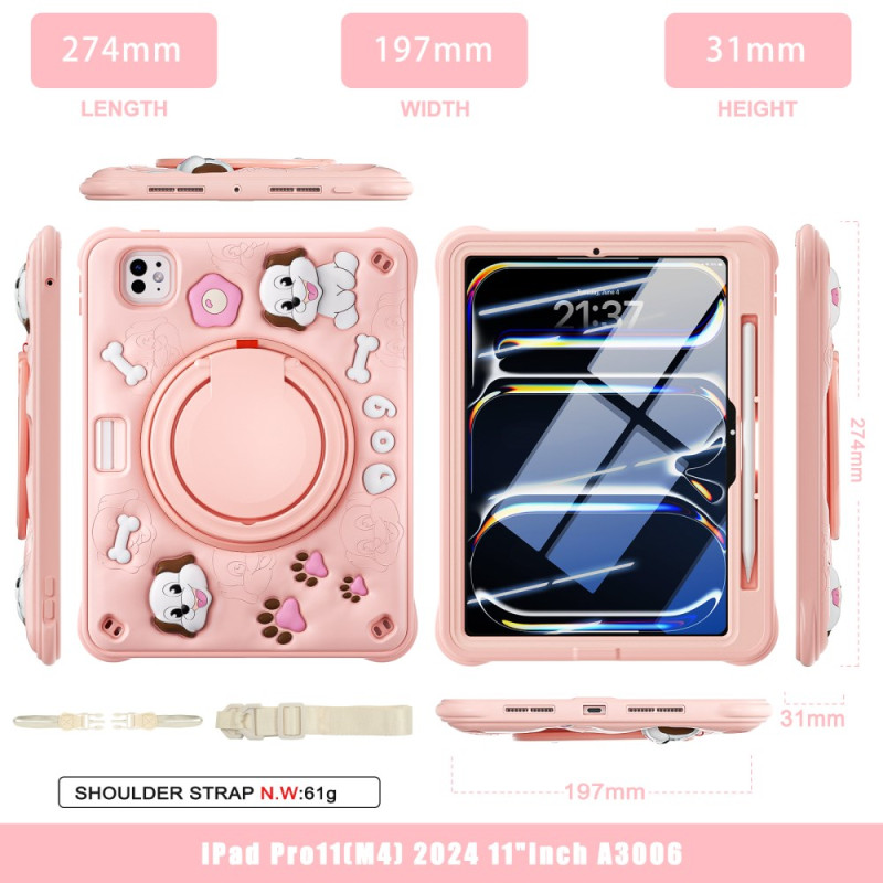 Ontdek onze schattige en functionele hoes voor iPad Pro 11 (2025) / 11 (2024). Met zijn schattige hondenmotief, geïntegreerde standaard en schouderriem combineert hij stijl en functionaliteit. De meerlaagse bescherming en versterkte hoeken zorgen voor optimale veiligheid voor je tablet. Deze veelzijdige hoes is ideaal voor zowel kinderen als volwassenen en gaat overal met je mee.