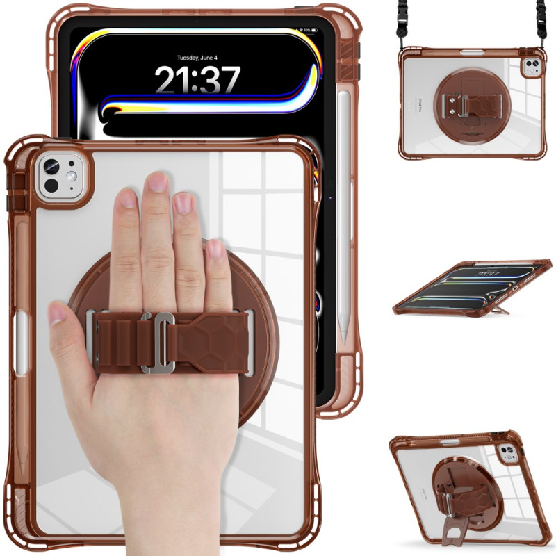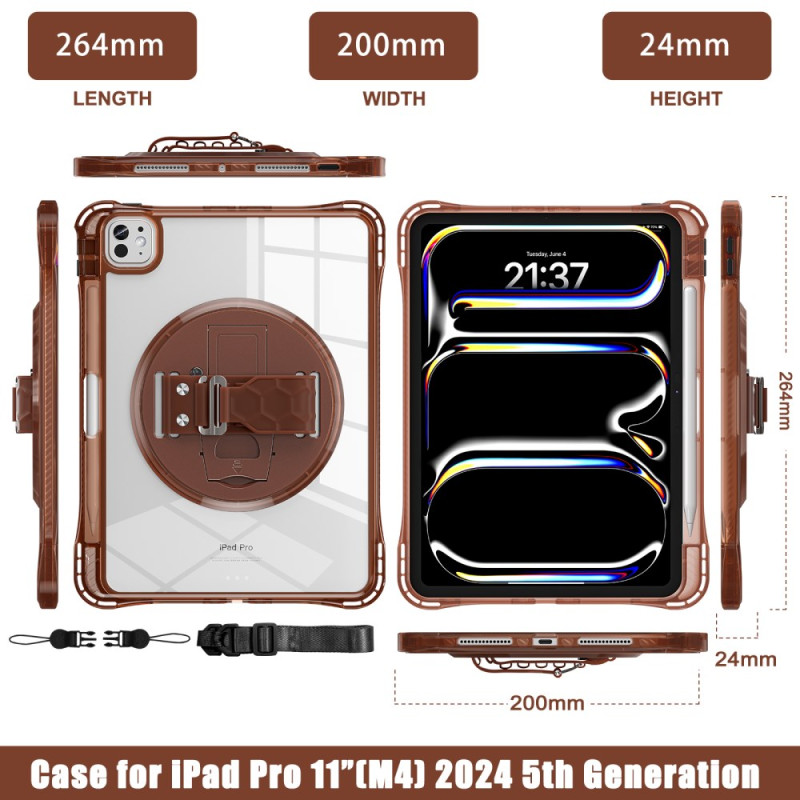 Ontdek onze innovatieve hoes voor iPad Pro 11 (2025) / 11 (2024), die volledige bescherming en ongeëvenaarde veelzijdigheid biedt. Met zijn 360° draaibare handriem, intrekbare standaard en verstelbare schouderriem combineert deze hoes functionaliteit met gebruiksgemak. Het robuuste ontwerp van PC, TPU en acryl zorgt voor optimale bescherming tegen stoten en dagelijkse slijtage. Of je nu werkt, video's bekijkt of op het web surft, deze hoes past zich aan je actieve levensstijl aan en biedt tegelijkertijd effectieve bescherming voor je iPad Pro 11.