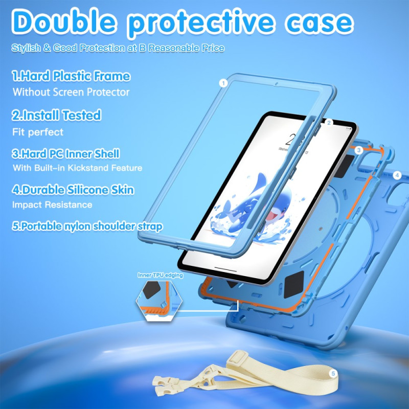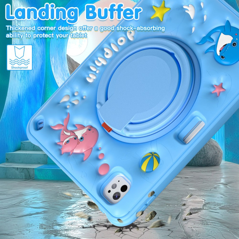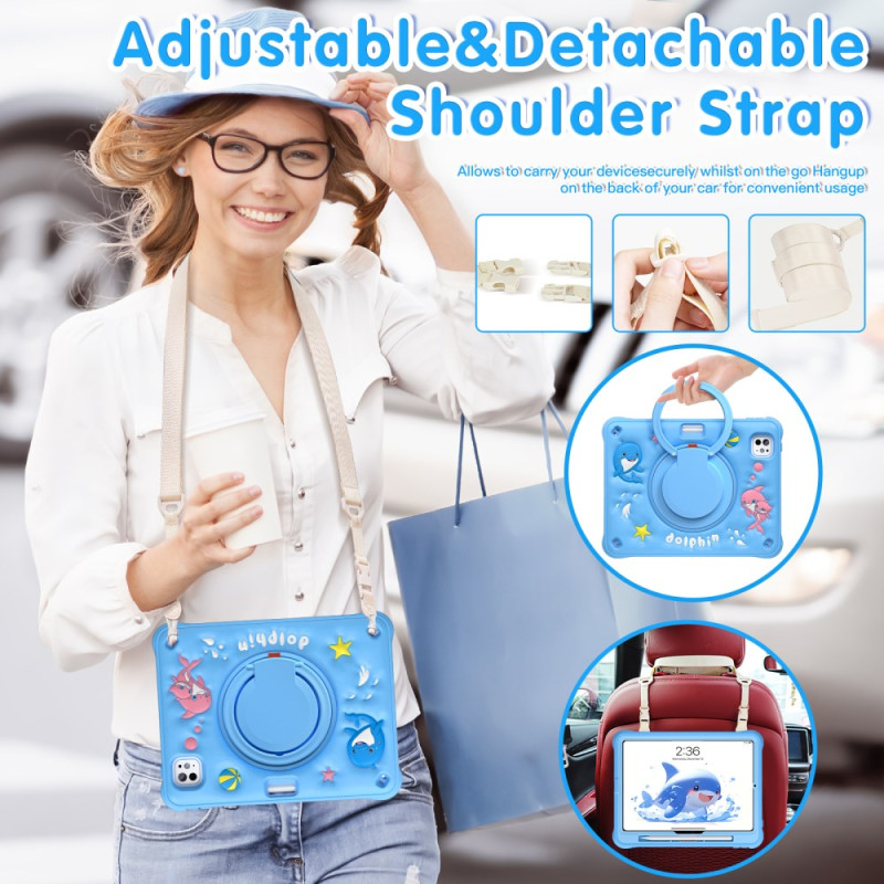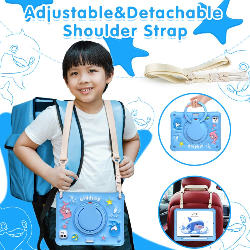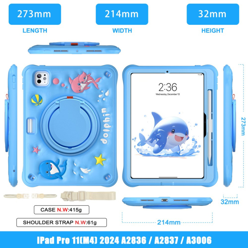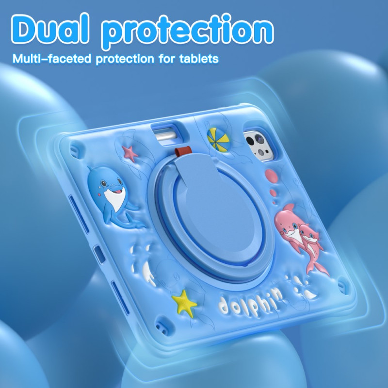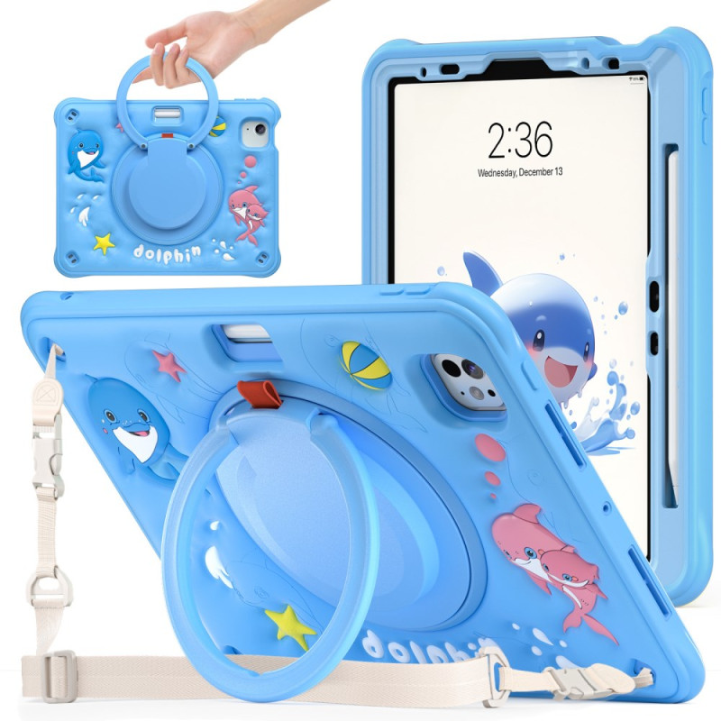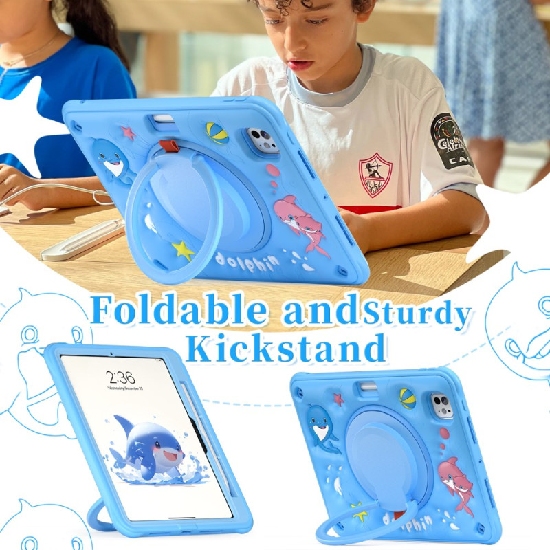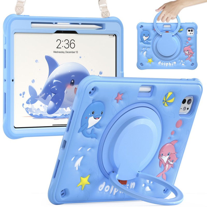 Ontdek onze schattige, multifunctionele hoes voor iPad Pro 11 (2025) / 11 (2024). Met zijn schattige dolfijnontwerp, meerlaagse bescherming, roterende handgreep en opvouwbare kickstand biedt hij maximale bescherming en veelzijdigheid. Je kunt ook gebruikmaken van de geïntegreerde potloodhouder en de afneembare schouderriem voor maximale draagbaarheid.