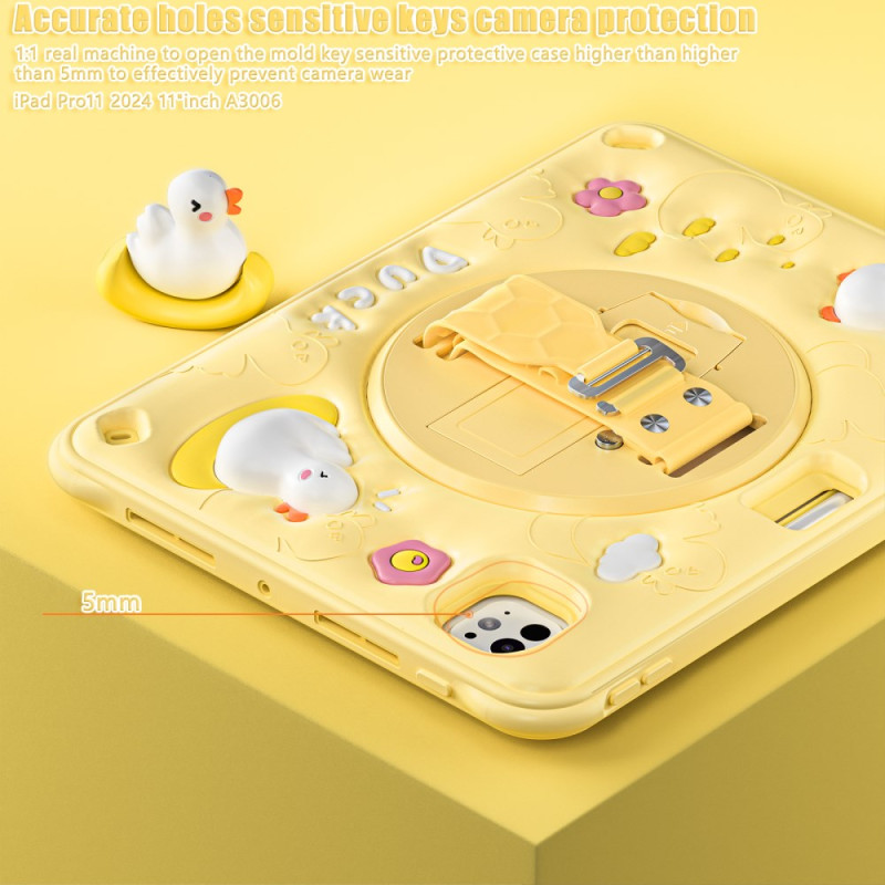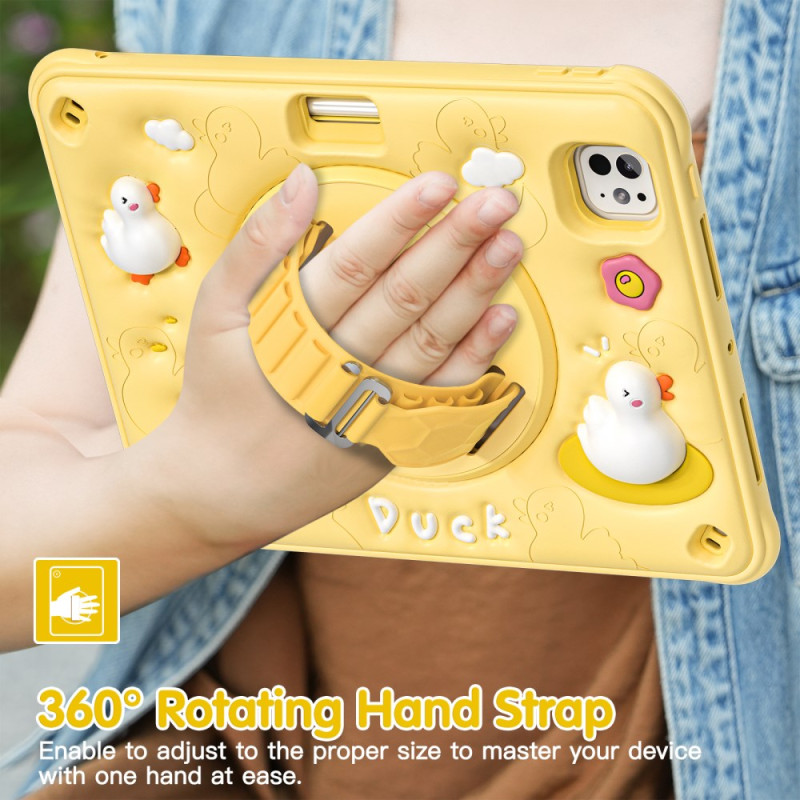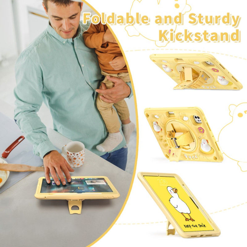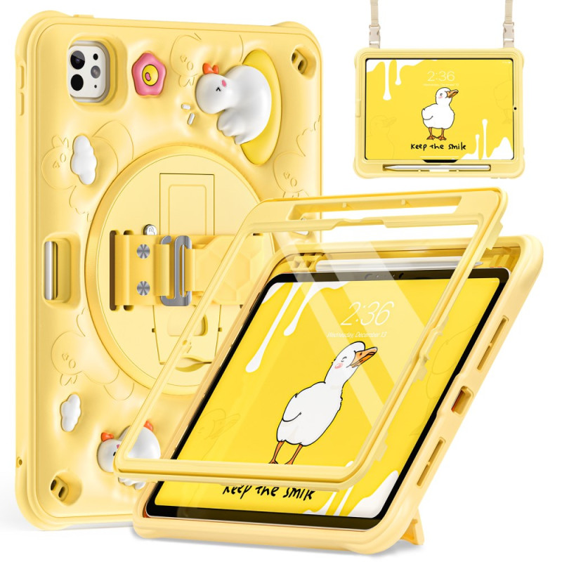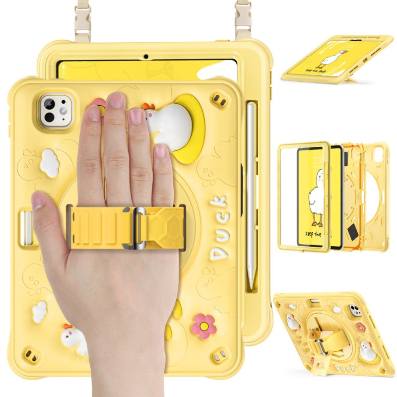 Ontdek onze innovatieve hoes voor iPad Pro 11, die bescherming en stijl combineert. Hij heeft een handige standaard, afneembare schouderriem en een schattig eendontwerp en biedt meerlaagse bescherming met versterkte hoeken. Het 360° draaibare handvat biedt een comfortabele grip, ideaal voor dagelijks gebruik.