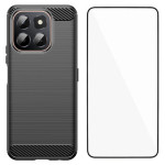 Bescherm uw Honor X6c 4G met deze elegante TPU-behuizing en de meegeleverde folie van gehard glas. Ontwerp met geborstelde structuur en koolstofvezel voor een moderne, sportieve look. Volledige bescherming met verhoogde randen voor het scherm en de camera.