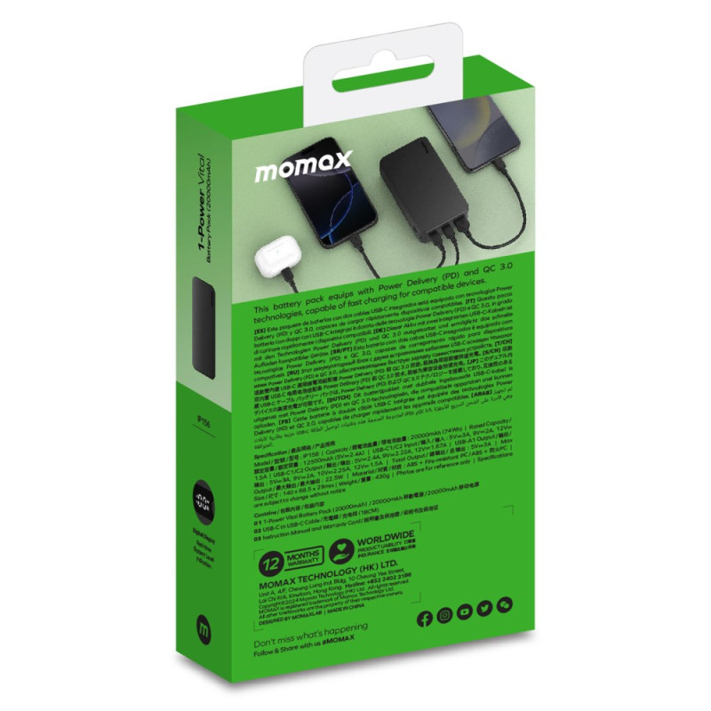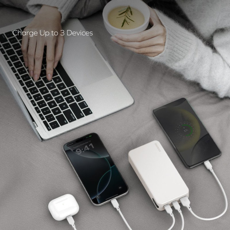 Kom nooit meer zonder stroom te zitten, zelfs niet met drie apparaten die veel stroom nodig hebben om op te laden. Deze 20.000mAh externe batterij met hoge capaciteit is de essentiële energiehub voor op reis of in het dagelijks leven. Met JSB-CPD snellaadtechnologie levert hij tot 22,5 W via de USB-A poort en 20 W via USB-C, voor maximale snelheid. Dankzij de drie veelzijdige poorten kun je tot drie apparaten tegelijk opladen (smartphones, tablets, koptelefoons, enz.). Het digitale LED-scherm geeft je direct inzicht in de status van de resterende batterij en de snellaadstatus, zodat je de levensduur van je batterij moeiteloos kunt beheren.