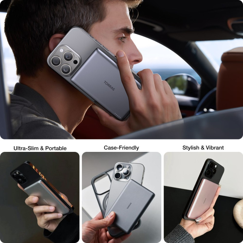 Het bereiken van recordbrekende laadprestaties in een ultradun formaat is de missie van de TORRAS Minimag Externe Batterij. Met een dikte van slechts 13,8 mm en een gewicht van 115 gram is deze 5000mAh unit de lichtste in zijn categorie, ontworpen voor de mobiele gebruiker. Hij heeft een uitzonderlijke snelheid en ondersteunt snel opladen via de kabel van 30W en draadloos opladen tot 27W, waardoor je apparaten gegarandeerd snel en efficiënt van stroom worden voorzien. De krachtige MagSafe-compatibele magnetische functie zorgt voor een stabiele, naadloze verbinding. Deze externe batterij is uitgerust met geavanceerde NTC-bescherming en polymeerbatterijen met een lange levensduur, waardoor hij meer dan 3 jaar meegaat en je hem met een gerust hart kunt opladen.