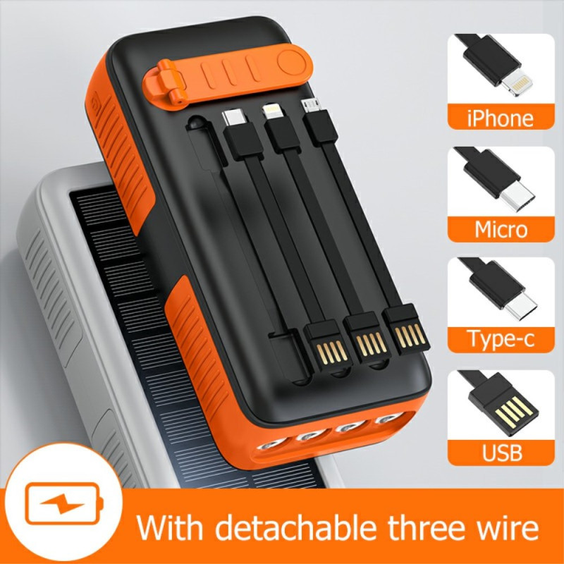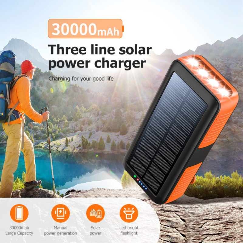 Wanneer toegang tot elektriciteit niet gegarandeerd is, wordt deze externe batterij een essentiële overlevingsuitrusting. Met een enorme capaciteit van 30000mAh is hij ontworpen voor lange expedities en noodsituaties. De unieke dubbele oplaadmethode - zonne-energie en zwengel - zorgt voor een constante autonomie, zelfs als je geen stroom hebt. Hij heeft een IP66-classificatie, is stevig, duurzaam en bestand tegen spatwater en stof. Voor de veiligheid is hij voorzien van een krachtige 4 LED zaklamp met SOS-modus. En dankzij de drie afneembare kabels (Lightning, Type-C, Micro) hoef je geen extra accessoires meer mee te nemen voor maximale veelzijdigheid.