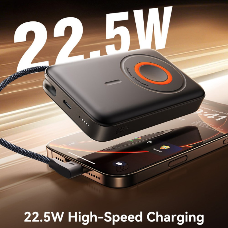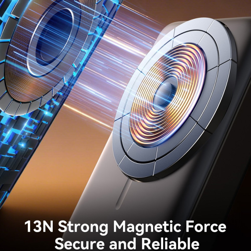 Ontworpen om een veilige, geïntegreerde stroomoplossing te bieden, herdefinieert deze JOYROOM 3-in-1 externe batterij gemak onderweg. Met zijn 10000mAh capaciteit, biedt het bijna twee volledige oplaadbeurten voor vlaggenschip modellen. Hij levert 22.5W supersnel oplaadvermogen, via de Type-C poort of de geïntegreerde kabel, en ondersteunt 15W draadloos opladen. De 13N magnetische bevestiging zorgt voor een stabiele verbinding. Dankzij de 360° draaibare ringstandaard kun je hem gemakkelijk dragen en handsfree bekijken. Dit model heeft 9 beschermingslagen en voldoet aan de luchtvaarteisen voor veilig transport.