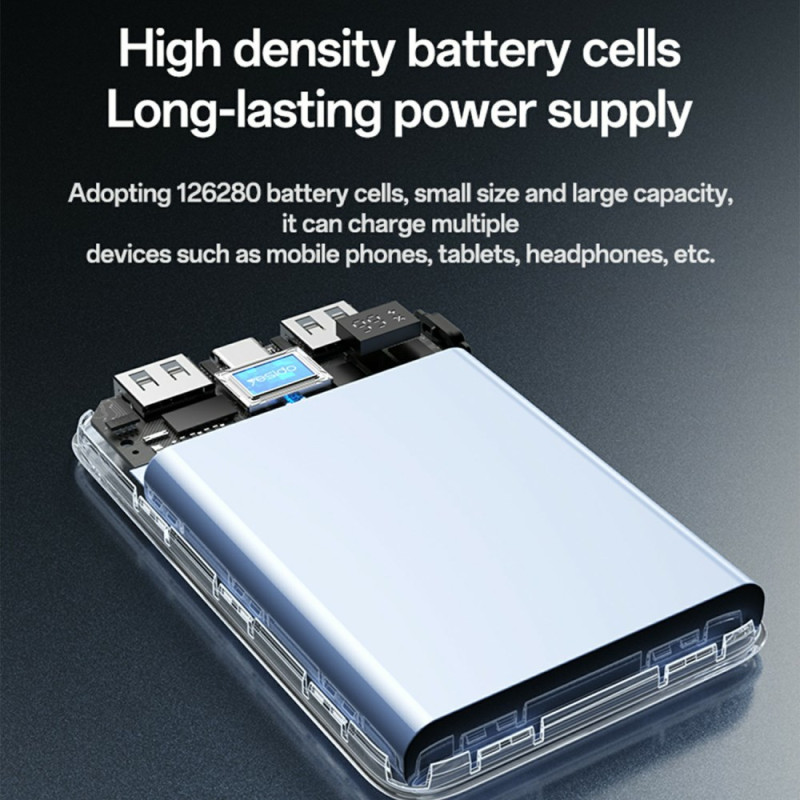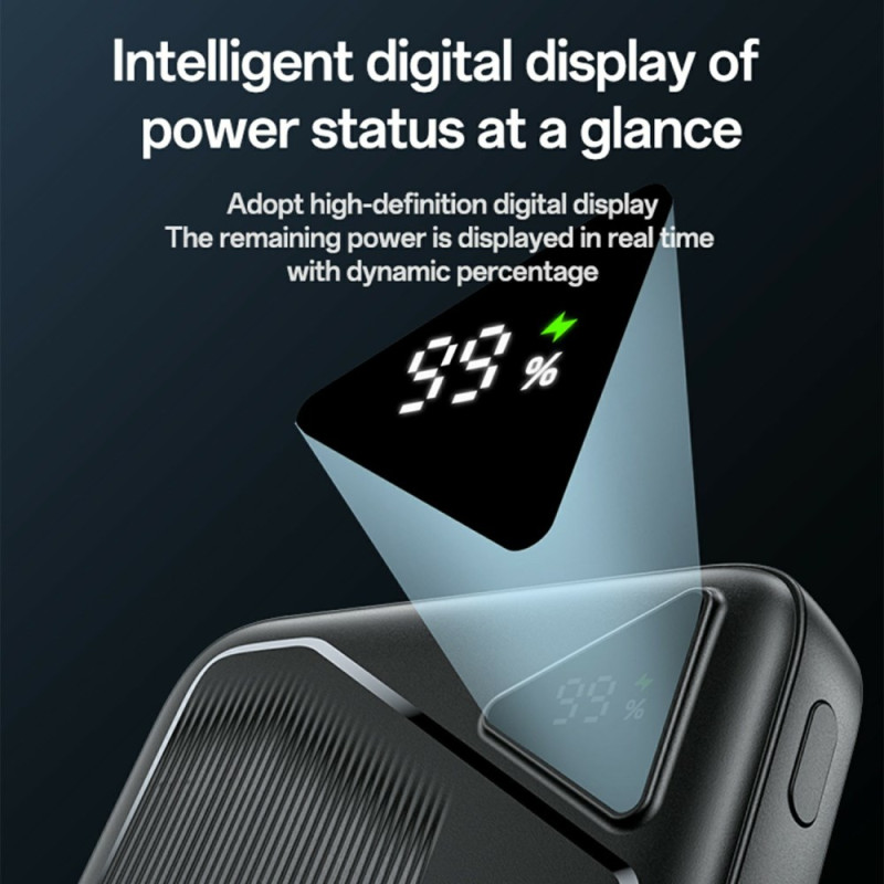 Deze externe batterij van YESIDO garandeert meerdere dagen autonomie en is ontworpen voor intensieve gebruikers en lange reizen. Met een kolossale capaciteit van 20.000 mAh, biedt het meerdere oplaadbeurten voor al je mobiele apparaten. Hij levert 22,5 W snellaadvermogen via de Type-C en USB-A uitgangen, waardoor de oplaadtijd aanzienlijk wordt geoptimaliseerd. Intelligent energiebeheer, gecombineerd met NTC-temperatuurregeling, zorgt voor veilig opladen en beschermt de gezondheid van je apparaten. Op het duidelijke digitale display kun je het resterende oplaadniveau nauwkeurig in de gaten houden.