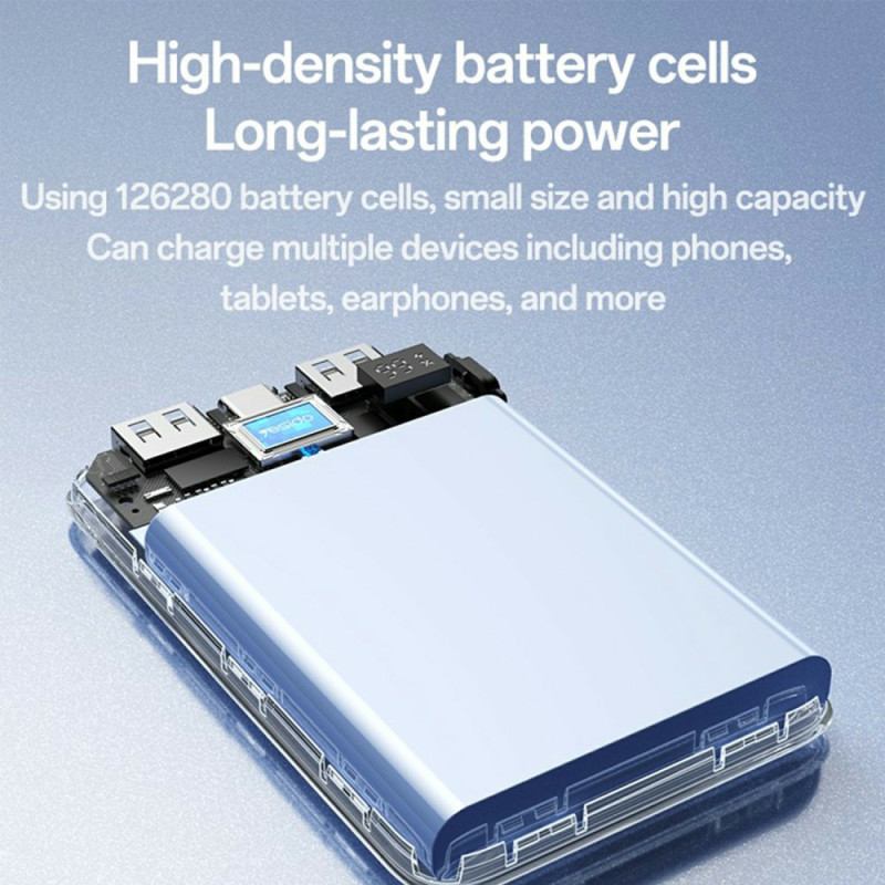 Optimaal energiebeheer en universeel opladen zijn nu vereenvoudigd met deze 20.000mAh eenheid met hoge capaciteit. De YESIDO YP85 externe batterij elimineert rommel door Type-C en Lightning kabels te integreren, en biedt tegelijkertijd een enorme energiereserve. Hij levert een maximaal uitgangsvermogen van 22,5 W, waardoor je apparaten snel worden opgeladen, en is voorzien van intelligent beheer (oplossing 620). De betrouwbaarheid wordt bevestigd door geavanceerde veiligheidsprotocollen (NTC) en het voldoen aan de Europese CE-normen. Dankzij het nauwkeurige digitale display kun je voortdurend de resterende capaciteit controleren.