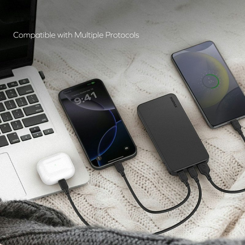Ontworpen als het perfecte compromis tussen kracht en draagbaarheid, is de MOMAX Vital External Battery het essentiële accessoire voor dagelijkse mobiliteit. De capaciteit van 10000mAh is ideaal voor meerdere oplaadbeurten, terwijl het uitgangsvermogen 22,5W bereikt via USB-A en 20W via USB-C, dankzij de JSB-CPD technologie. Hij kan tot drie apparaten tegelijk voeden via de veelzijdige poorten. Ondanks zijn prestaties heeft dit apparaat een compact profiel (16 mm, 236 g). Het digitale LED-scherm zorgt voor een nauwkeurige, professionele bewaking van de levensduur van de batterij. Dit apparaat voldoet aan de huidige regelgeving om veilig gebruik te garanderen.