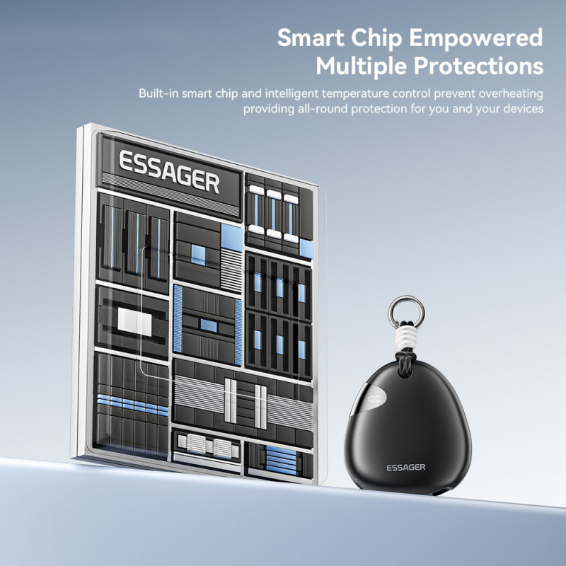 De efficiëntie van snel opladen en het gemak van een alles-in-één oplossing zijn nu ontworpen voor actieve mobiliteit. Deze ESSAGER 10000mAh externe batterij biedt een maximaal vermogen van 22,5W, wat zorgt voor snel en efficiënt opladen. De geïntegreerde intrekbare Type-C kabel (70cm) elimineert rommel, terwijl de karabijnhaak een veilige bevestiging aan een tas of riem mogelijk maakt. Uitgerust met een slimme chip, optimaliseert hij de oplaadefficiëntie en beschermt hij aangesloten apparaten. Het digitale display biedt een nauwkeurige controle van de levensduur van de batterij. Het hele apparaat voldoet aan de CE- en RoHS-normen, dus je kunt het met het volste vertrouwen gebruiken.
