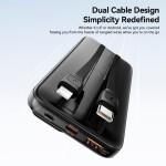 Prestaties en vereenvoudigde logistiek zijn de kern van deze ESSAGER externe batterij, ontworpen voor efficiëntie zonder compromissen. Met zijn capaciteit van 10000 mAh garandeert hij meerdere oplaadbeurten voor al je apparaten. Het ontwerp bevat twee kabels (Type-C en Lightning), waardoor er geen extra accessoires nodig zijn. Hij levert een ultrasnel laadvermogen van 22,5 W via de USB-uitgangen en Type-C kabel. Het intelligente digitale display controleert nauwkeurig de levensduur van de batterij. Met multi-protocol compatibiliteit en CE/RoHS-certificering is dit apparaat een garantie voor veiligheid en veelzijdigheid.