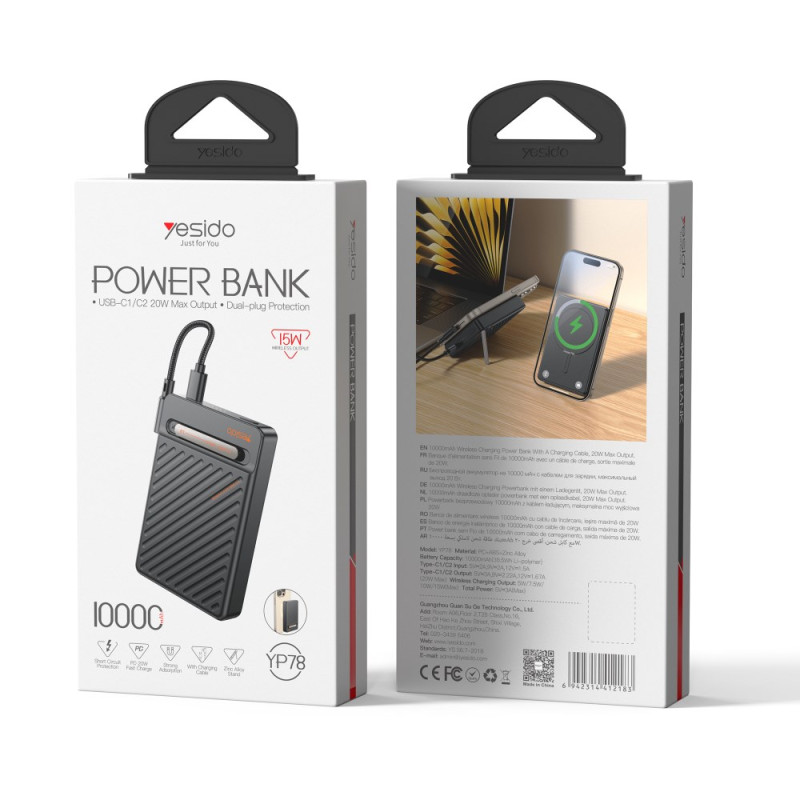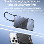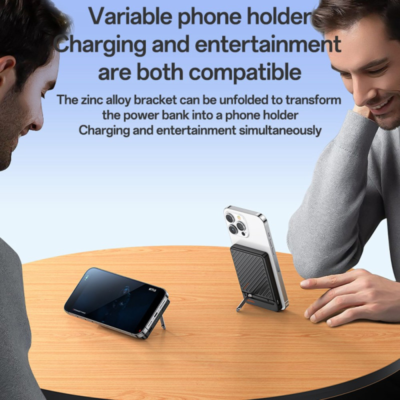 Totale eliminatie van oplaadangst wordt gegarandeerd door deze 3-in-1 voedingsoplossing, die kabels, draadloos en een standaard integreert. Deze 10000mAh externe batterij biedt 15W magnetisch draadloos vermogen en 20W snel bekabeld opladen. Het bevat een Type-C kabel voor onmiddellijk opladen zonder geknoei, en de intrekbare standaard maakt handsfree kijken mogelijk. Veiligheid is een prioriteit: het apparaat heeft een uniek dubbel beschermingssysteem tegen oververhitting en PCBA, wat een betrouwbaar gebruik garandeert dat voldoet aan de Europese normen.