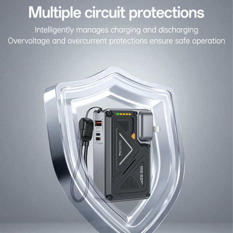 De integratie van een muurlader en een draadloze batterij in één apparaat lost de uitdagingen van het opladen in verschillende situaties op. Deze externe batterij van YESIDO biedt dubbele AC/DC-functionaliteit voor ultieme veelzijdigheid. Hij levert een magnetische draadloze lading tot 15 W en een snelle bekabelde lading van 22,5 W (via USB). Het apparaat heeft een geïntegreerde standaard voor horizontaal kijken tijdens het opladen. De veiligheid wordt gegarandeerd door intelligente managementchips en een V0-brandveilige pc-constructie. Vier heldere LED-indicatoren zorgen voor nauwkeurige en directe controle van de oplaadstatus.