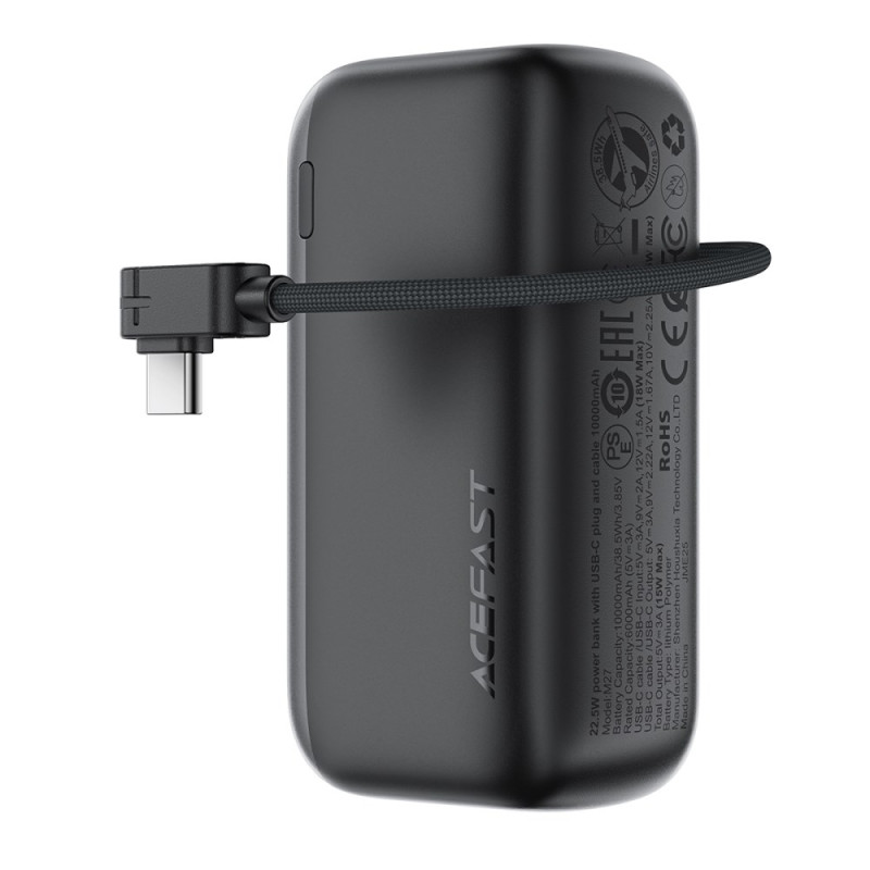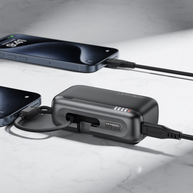 Deze compacte externe batterij combineert kracht en functionaliteit, zodat je hem overal mee naartoe kunt nemen. Met zijn 10000mAh biedt hij een comfortabele energiereserve terwijl hij toch licht blijft en gemakkelijk in een zak te stoppen is. Dankzij de intrekbare USB-C kabel hoef je geen extra accessoires mee te nemen en de 22,5 W snellader zorgt voor een efficiënte stroomvoorziening voor compatibele apparaten. Op het LED-scherm kun je in één oogopslag het energieniveau controleren, zodat je de hele dag koel kunt blijven.
