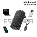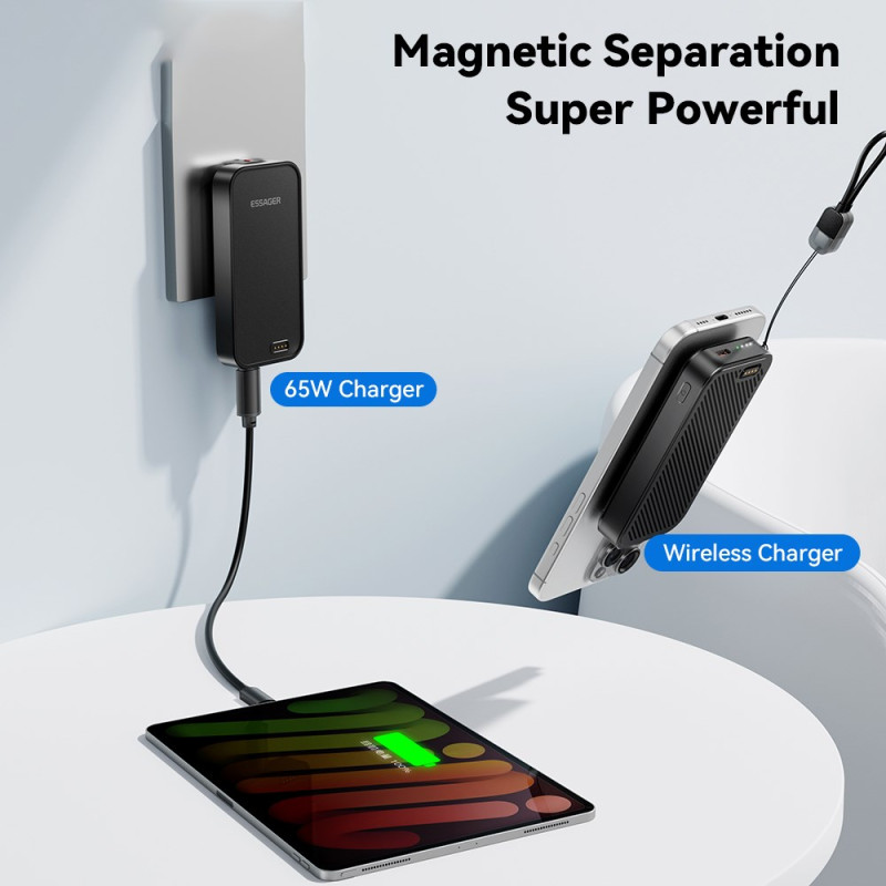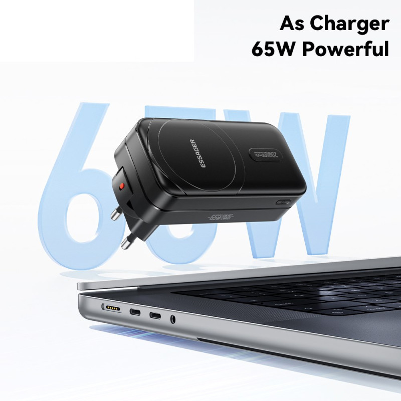 Deze reisadapter combineert drie essentiële functies in een compact formaat: internationale lader, externe batterij en draadloos laadstation. Dankzij het modulaire, stapelbare ontwerp is hij gemakkelijk mee te nemen, terwijl de 5000mAh batterij zorgt voor een handige energiereserve als je onderweg bent. Dankzij de GaN-technologie biedt snel opladen tot 65 W via de Type-C-poort efficiënte stroom voor een groot aantal apparaten. Opvouwbare stekkers en wereldwijde compatibiliteit maken het gemakkelijk om hem in het buitenland te gebruiken, terwijl ingebouwde beveiligingen zorgen voor veilig gebruik.