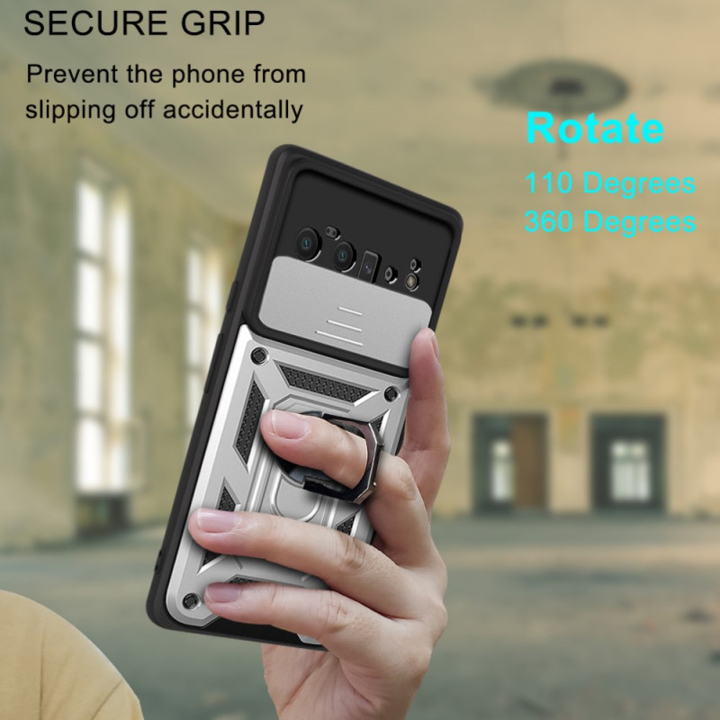 Protégez votre Google Pixel 6 avec cette super coque munie d'un anneau-support et d'un protège lentilles à glissière.