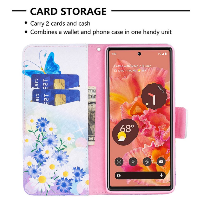Uw Google Pixel 6 ziet er geweldig uit wanneer deze wordt beschermd door deze unieke hoes die is versierd met geschilderde vlinders en bloemen.