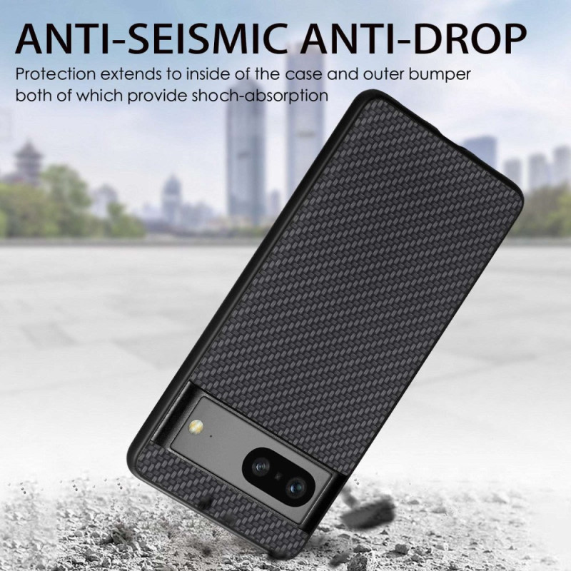 Een prachtige koolstofvezel schil voor de Google Pixel 7 met een verfijnd gevoel en ontwerp.