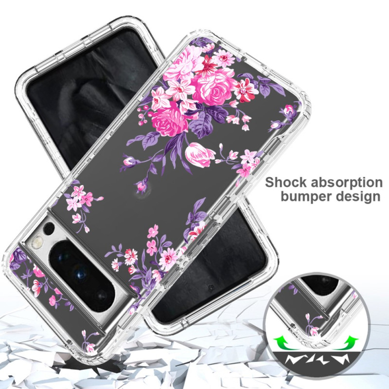 Deze verstevigde transparante hoes met een bloemmotief beschermt je Google Pixel 8 Pro terwijl je hem decoreert.