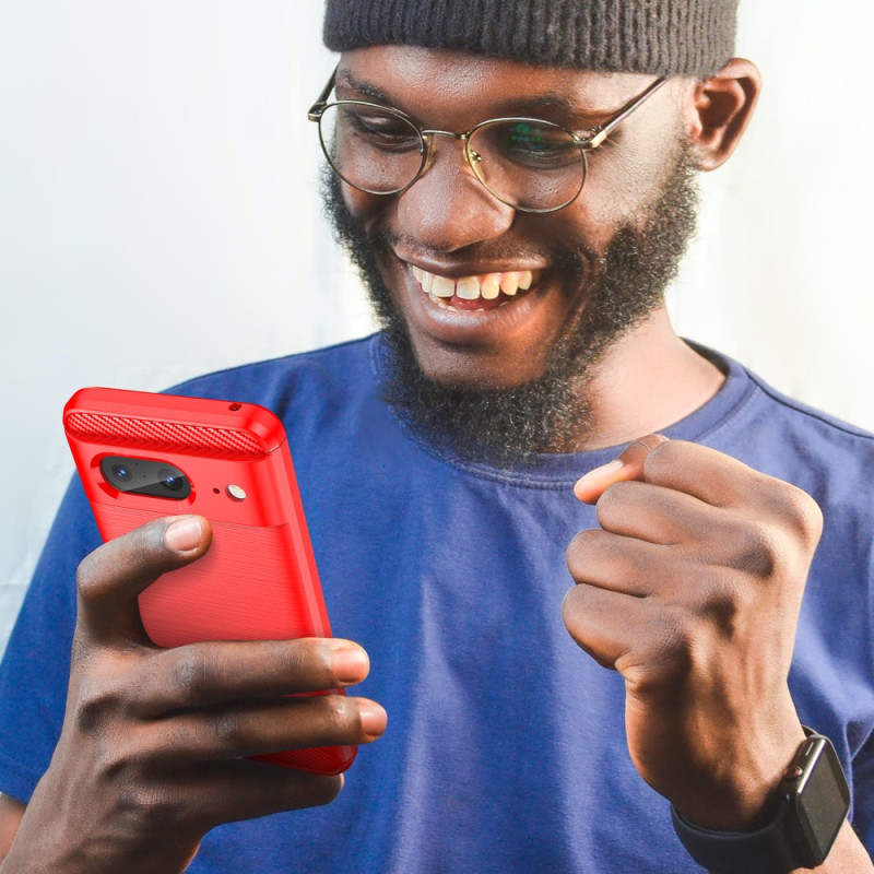 Deze hoes van siliconen en koolstofvezel beschermt je Google Pixel 8 op elegante wijze.