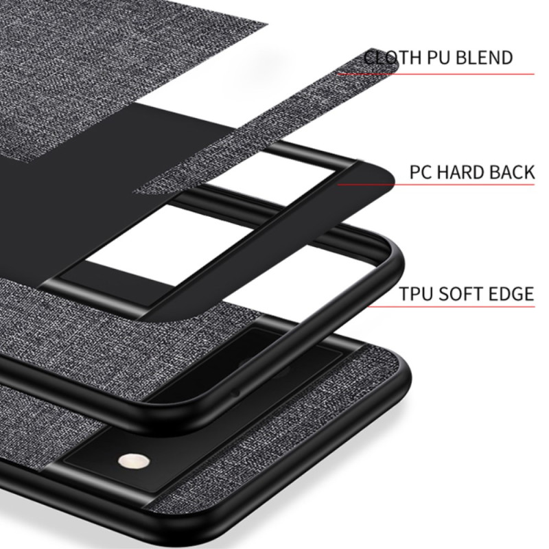Kies voor deze geweldige kunststof behuizing met een stoffen hoes voor een uitstekende grip op de Google Pixel 8.