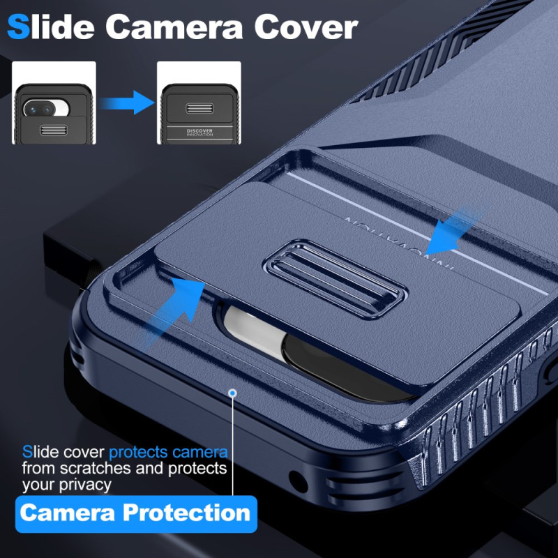 Ontdek onze innovatieve beschermhoes voor de Google Pixel 9A. Deze case biedt bescherming voor de schuifcamera en combineert zacht TPU en hard PC voor optimale bescherming tegen stoten.