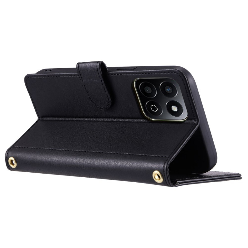 Elegante portemonneehoes met doorgestikt ruitpatroon voor uw Honor X7c 5G / 4G / 200 Smart 5G. Voorzien van een dubbelzijdige magnetische sluiting, 3 kaartsleuven, muntzakje en standaardfunctie. Geleverd met 145 cm schouderriem en handriem voor eenvoudig...