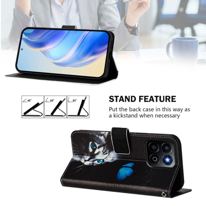 Bescherm je telefoon in stijl met dit portemonneehoesje met een betoverend vlinder- en kattenmotief. Met 3 kaartsleuven, een verstelbare houder met meerdere hoeken en een veilige polsband combineert hij praktisch en elegant voor dagelijks gebruik.