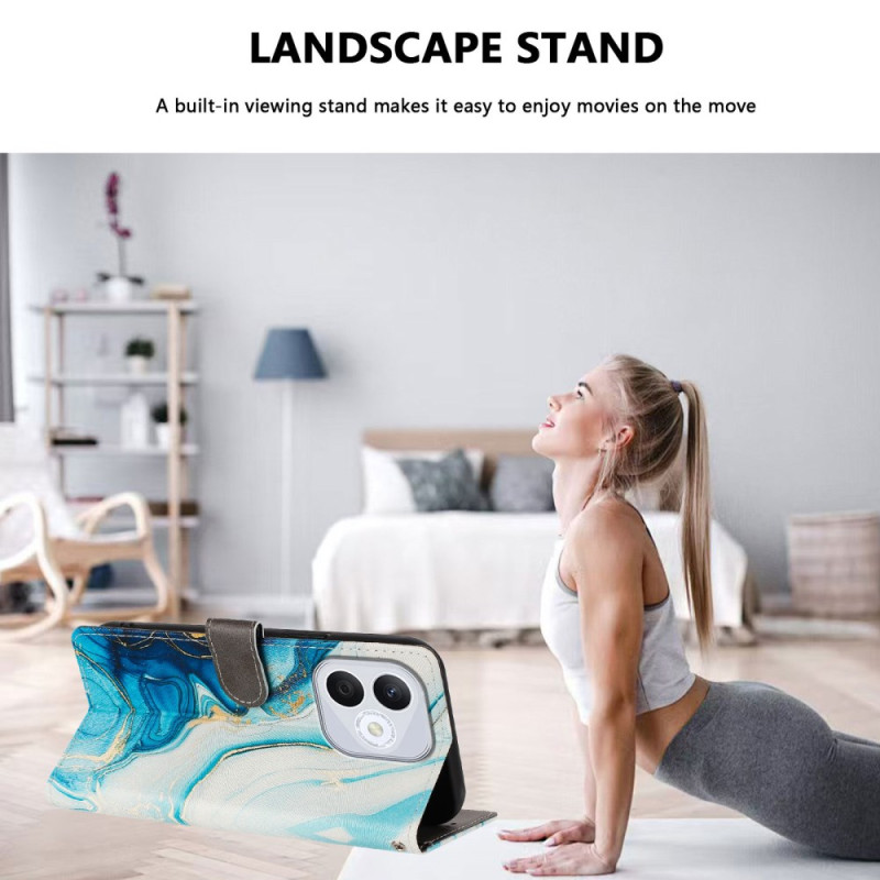 Bescherm je Honor 400 Lite 5G in stijl met deze elegante portemonneehoes met blauw marmermotief. Met kaartsleuven, een verstelbare houder en een praktische handriem combineert hij robuuste bescherming met alledaags gebruiksgemak.