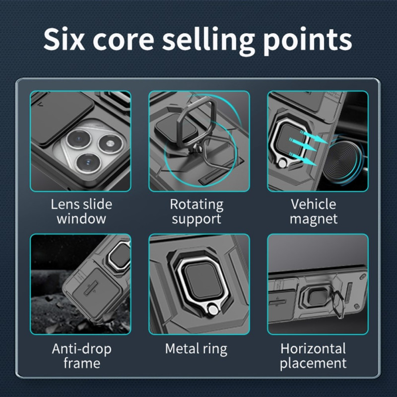 Protégez votre Honor 400 Lite 5G avec cette coque robuste dotée d'une béquille rotative intégrée et d'un cache objectif coulissant. Fabriquée en matériaux de qualité supérieure, elle offre une protection complète contre les chocs et les rayures tout en permettant un accès facile à toutes les fonctionnalités.